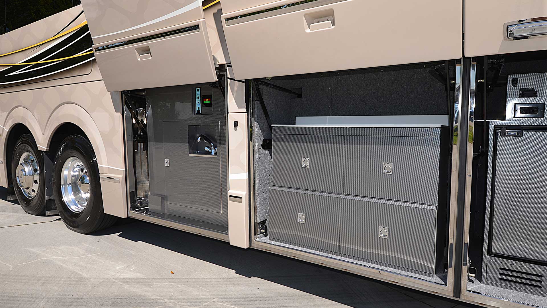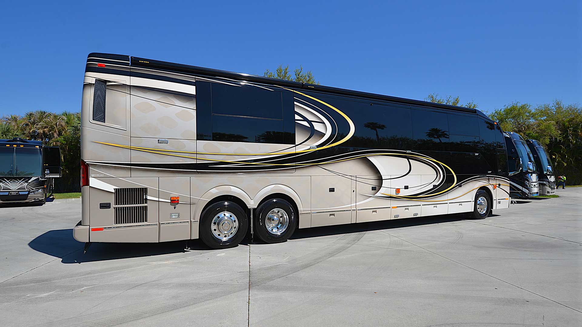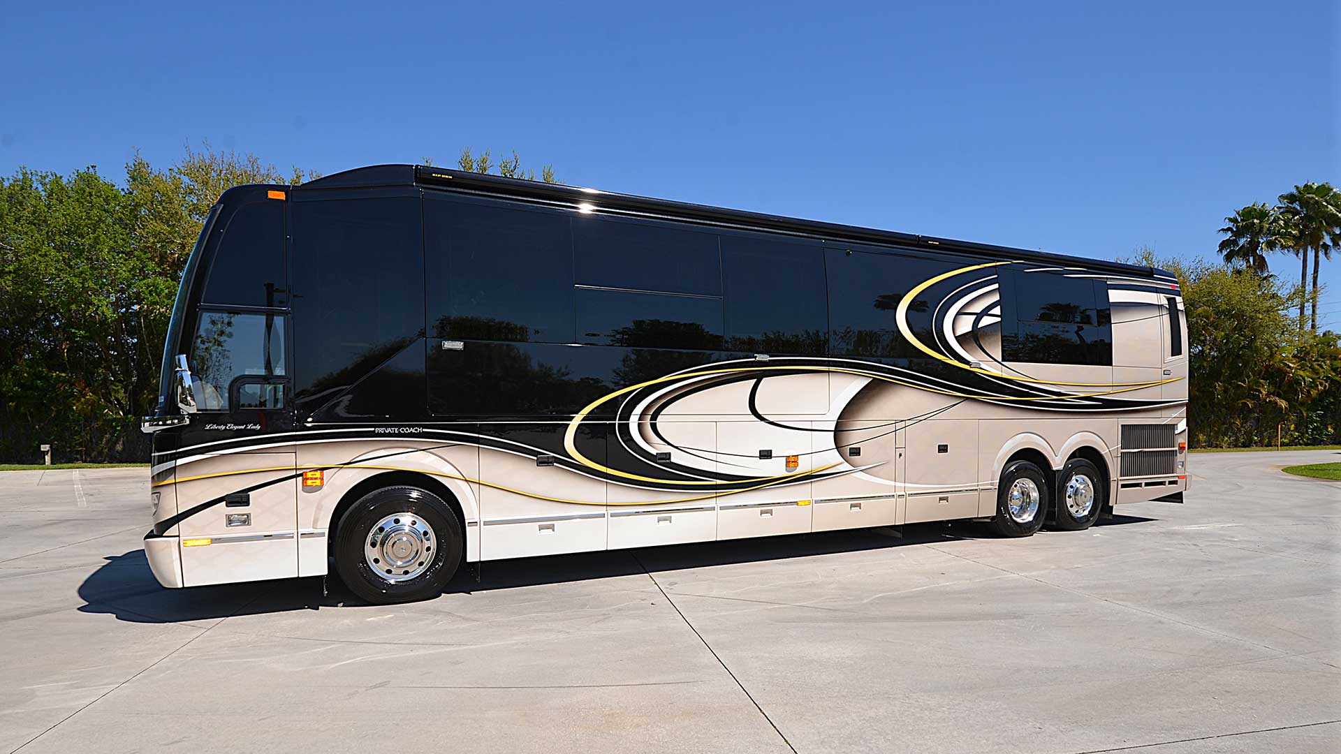 The best of the best! This triple slide beauty arrives in exceptional condition, having undergone a full Liberty Coach PDI and services just 8,000 miles ago. Currently in our Stuart inventory and available now – call for a showing today!