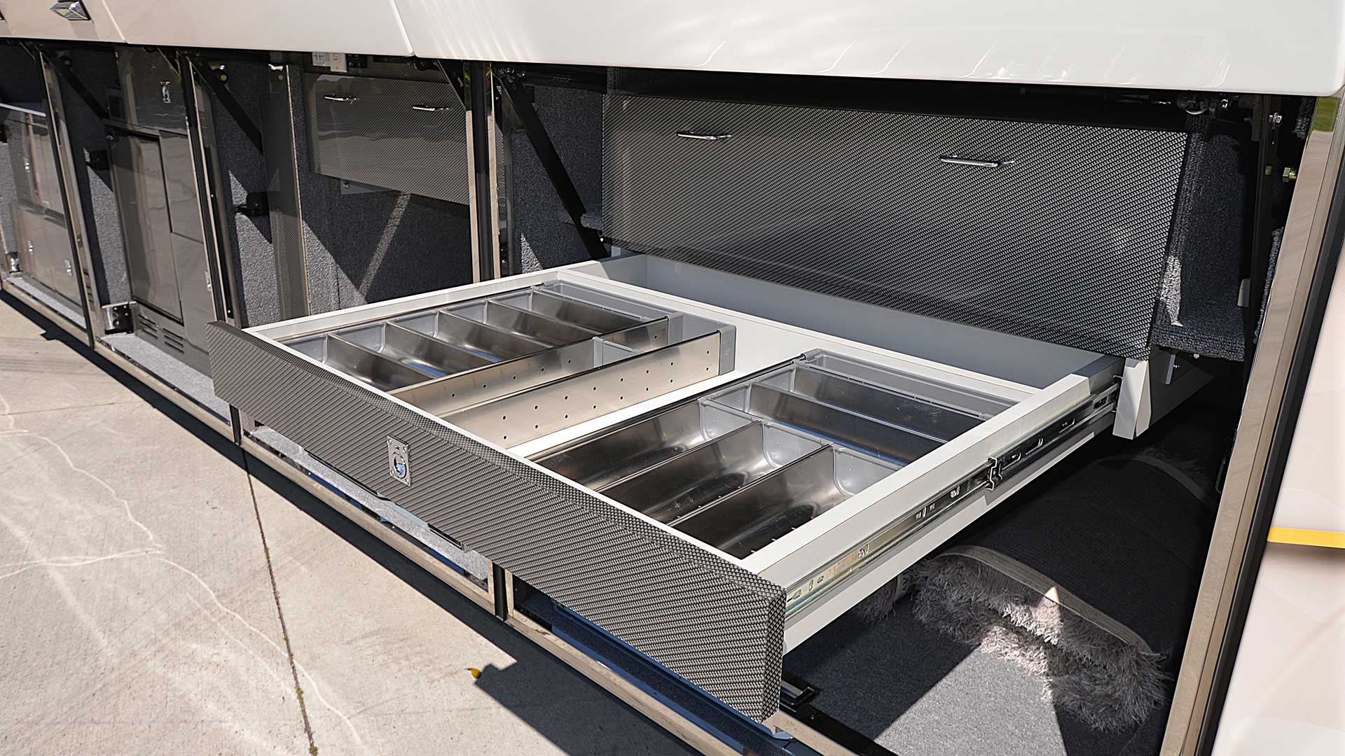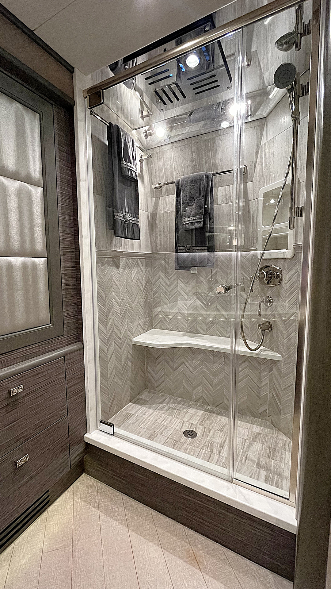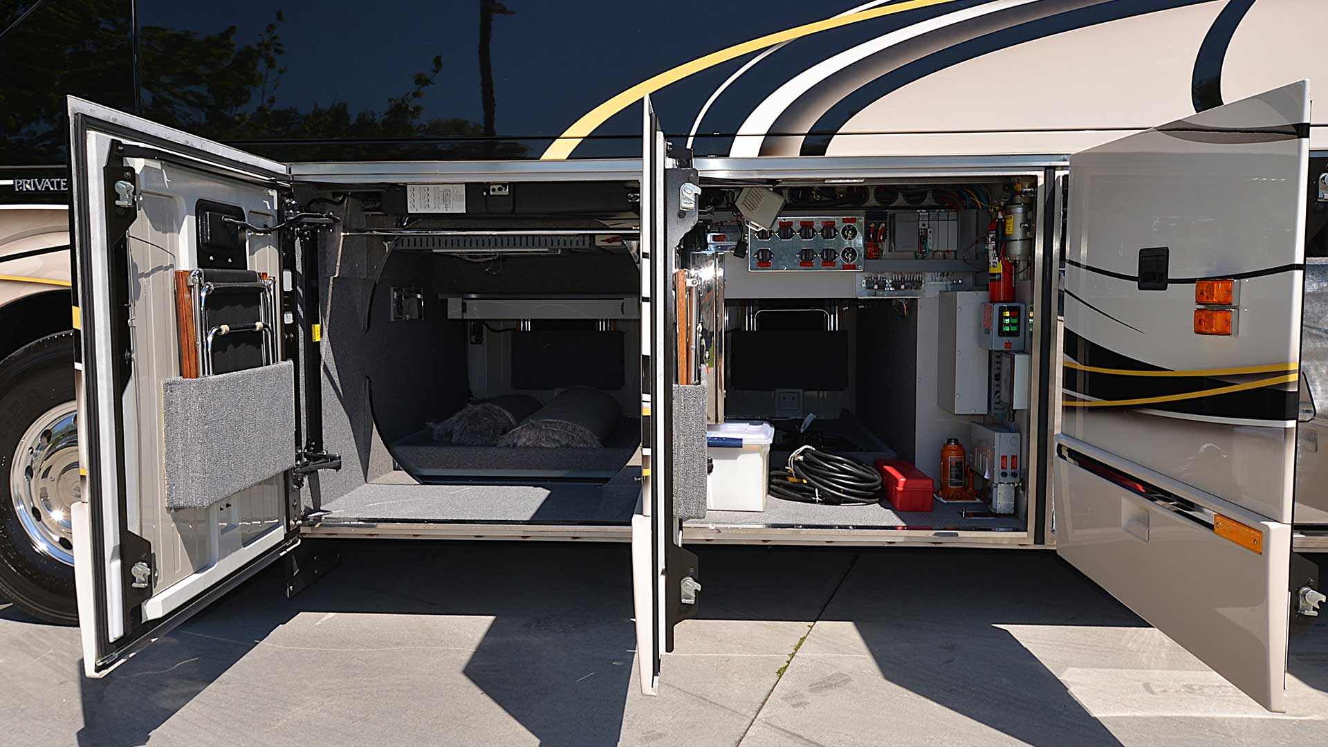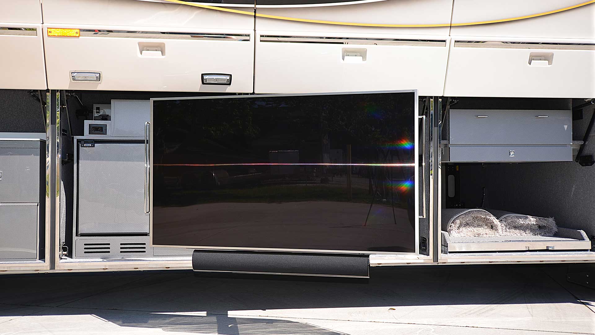 Lower bay E-Center with 65” flat screen TV, Marantz stereo